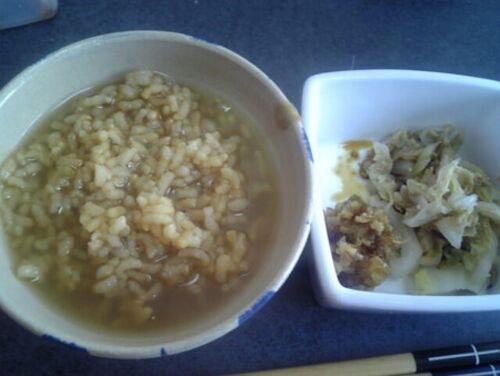 朝→おかいさん 白菜の漬物 金山寺味噌(0円) 昼→カップラーメン[シーフード](68円) 夜→ごはん シーフードサラダ 鶏のから揚げ アスパラベーコン(0円)