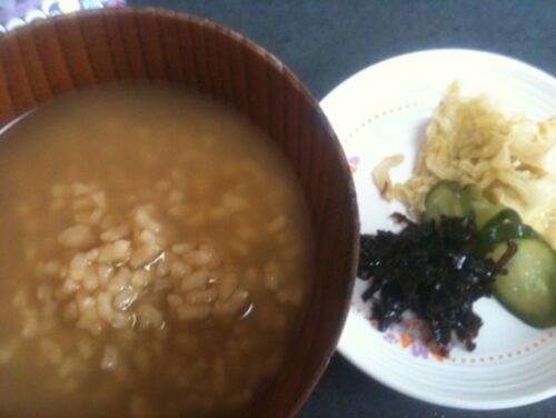 朝→おかいさん 漬物 昼→鮭弁当