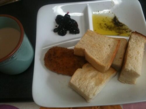 朝→トースト コロッケ カフェオレ 昼→豚の生姜焼き弁当 夜→ファミマのバスタ(389円?)