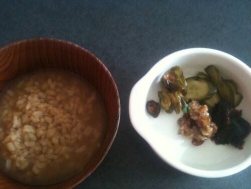 朝→おかいさん 漬け物 昼→鶏マヨ弁当 夜→鯵のたたき チーズリゾット(500円)