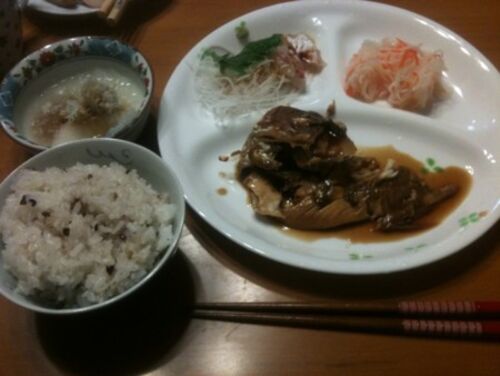 朝→一口サンドイッチ グレープ&カシスジュース(450円ぐらい) 昼→宝屋のラーメン 餃子 玉子かけごはん 夜→ごはん トンカツ 鯛の刺身 鯛の煮付け ホッケ 大根おろし なます