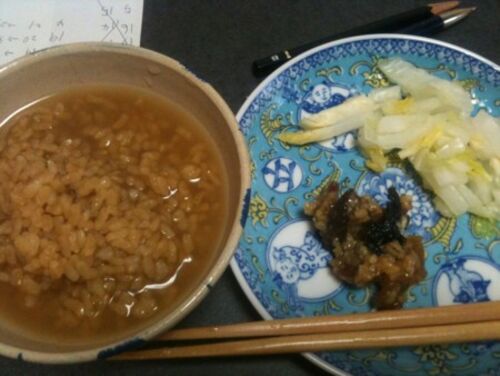朝→おかいさん 漬け物 昼→鮭弁当 夜→セブイレブンのエビグラタン ピーマンの金山寺味噌炒め(398円)