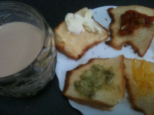 朝→トースト チャイ 昼→野菜いっぱいのみそ汁 ごはん 鯖の煮付け 夜→ごはん おろしポン酢ハンバーグ かぼちゃのタルタルかけ 野菜いっぱいの味噌汁