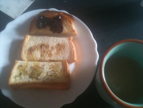 朝→トースト カフェオレ 昼→ブリの照り焼き弁当 夜→たらこクリームスパゲテ サラダ(100円ぐらい)