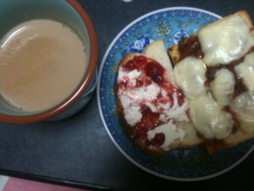朝→カフェオレ トースト 昼→焼き鮭弁当 夜→なめこの味噌汁 ごはん 納豆 唐揚げ ほうれん草のおひたし(150円ぐらい)