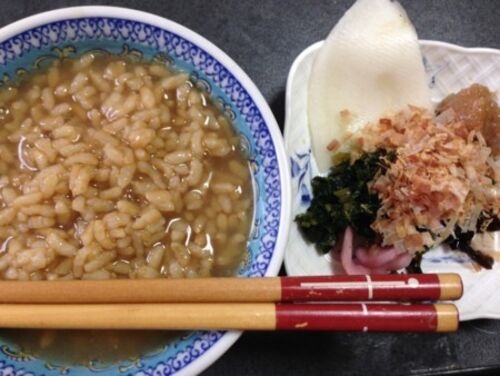 朝→おかいさん 漬物 昼→ハンバーグ弁当 夜→なぞの食べ物