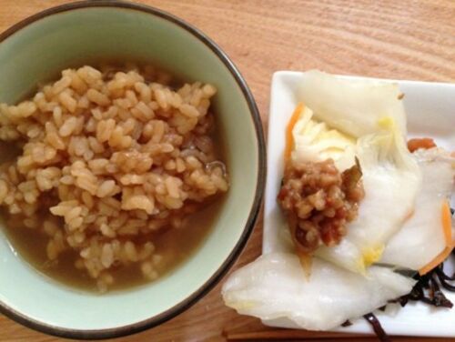 朝→おかいさん 漬物 昼→白身魚のパン粉焼き弁当