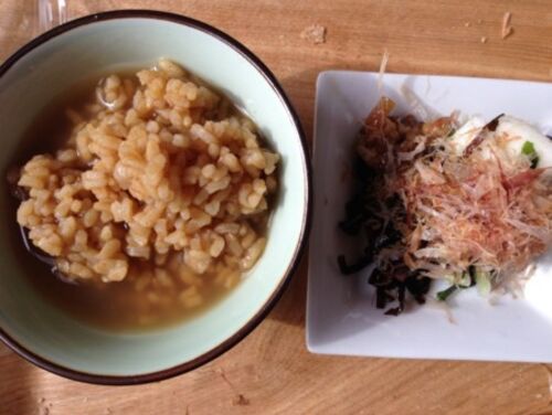 朝→おかいさん 漬物 昼→ミートソーススパゲティ スナップエンドウ 夜→ごはん 豚肉のキノコのマスタード焼き ほうれん草の胡麻和え
