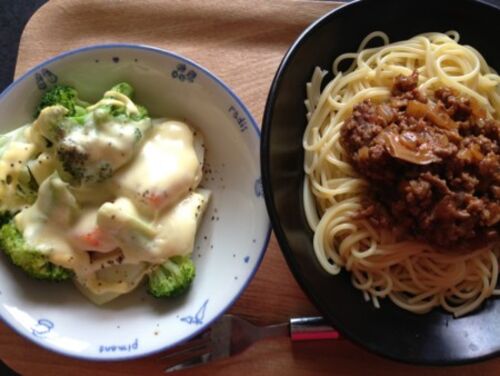 朝→なし 昼→ミートスパゲティ 温野菜のチーズかけ 遅めの昼ごはん。 夜→ごはん ローストビーフ 鯵の叩き(350円くらい)