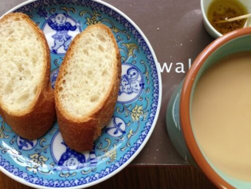 朝→パン カフェオレ